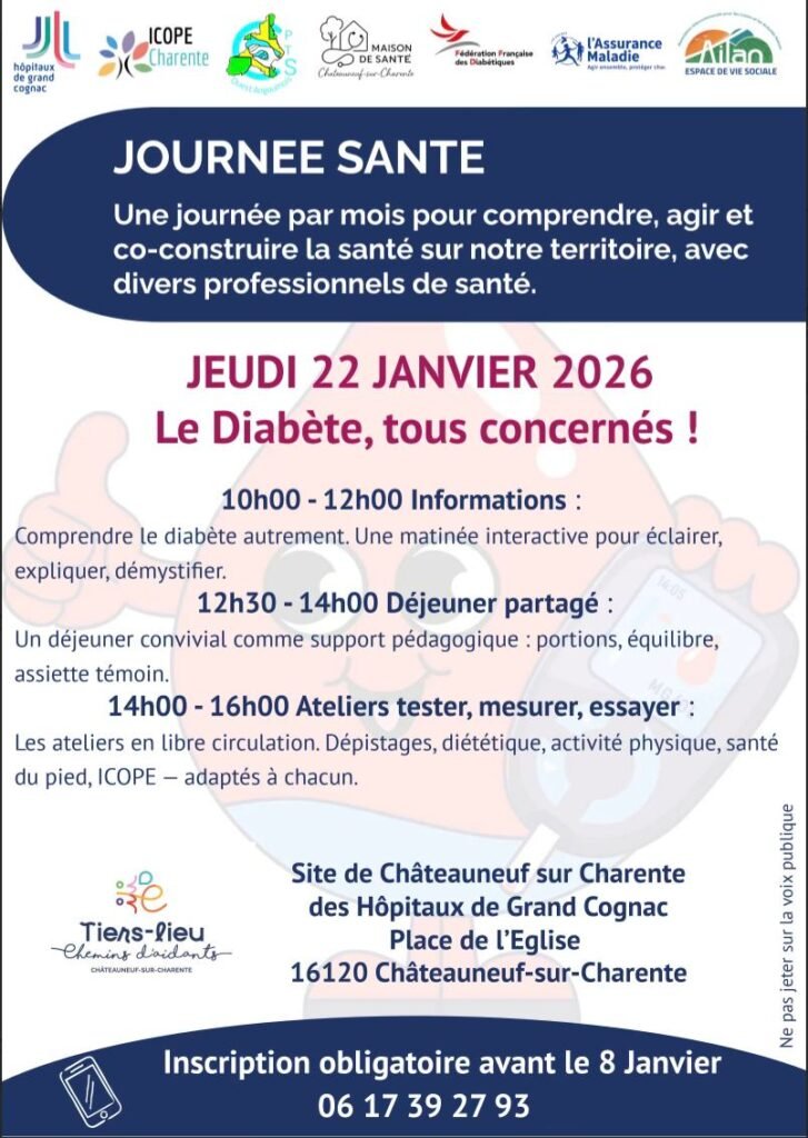 La Plateforme des Aidants, en partenariat avec la MSP de Châteauneuf, les Hôpitaux du Grand Cognac, et la CPTS Ouest Angoumois, lance une série d’actions mensuelles de prévention ouvertes à tous à partir de Janvier 2026 : aidants, aidés, habitants du territoire, professionnels aidants…L’objectif : informer et accompagner chacun autour de thématiques de santé du quotidien.